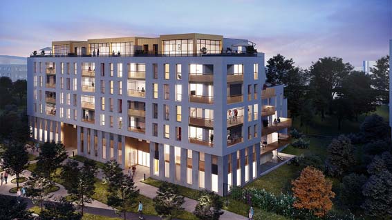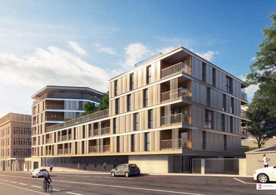 Rue Cyffiée, le programme En Scène de Kaufman & Broad intègre le nouvel écoquartier Nancy Grand Cœur. Face au centre commercial Saint-Sébastien, il propose des appartements du studio au 4 pièces à l’agencement optimisé et aux vues dégagées sur la verdure. Grâce aux nombreuses baies vitrées et aux balcons et terrasses, la lumière naturelle y sublime les volumes. La construction toute de bois vêtue s’harmonise parfaitement avec son environnement et fait le lien avec le cœur d’ilot paysagé. Elle a les certifications NF Habitat et RT 2012.