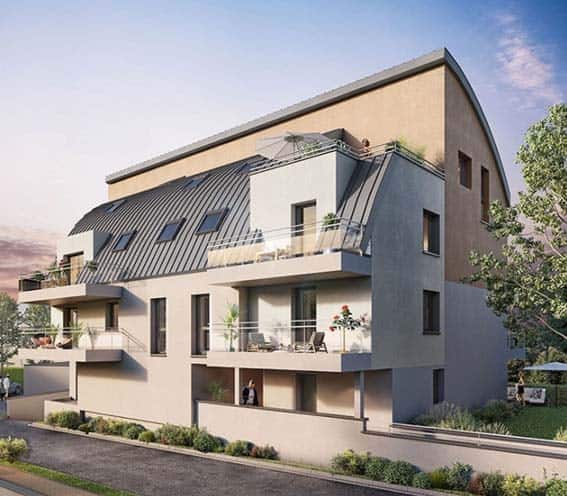 Rue d’Ernolsheim, à 15 min du centre-ville de Strasbourg, dans le quartier de la Montagne Verte, la résidence Clos Saint-Jean propose des appartements du 2 au 4 pièces. La construction s’intègre dans un environnement pavillonnaire et est proche de l’église Saint-Jean. Pour s’y fondre, elle adopte des toitures en pans. En cœur d’ilot, un espace paysager offre à ses habitants un lieu de détente. La résidence affichera des performances thermiques et énergétiques remarquables. Jokine Wehbe est l’architecte du projet réalisé en copromotion avec ALCYS Résidences.