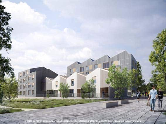 Voie des Jumeaux, le programme Les Prairiales se compose de 52 logements collectifs du studio au 5 pièces, dont des duplex et également 3 maisons de ville. L’ensemble des appartements se répartit en 4 bâtiments en R+2 et R+4. Au rez-de-chaussée, des commerces sont prévus. L’architecte est Michel Guthman pour l’agence MG-A/U.