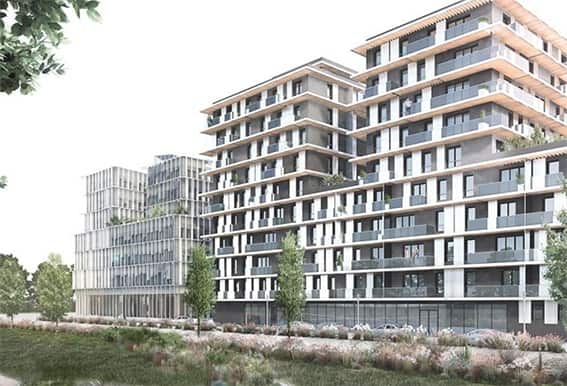 Un T1 de 34 m2 est à 113 000 €. Un T4 de 84,50 m2 est à partir de 303 000 €. La livraison est prévue au 1er trimestre 2022.