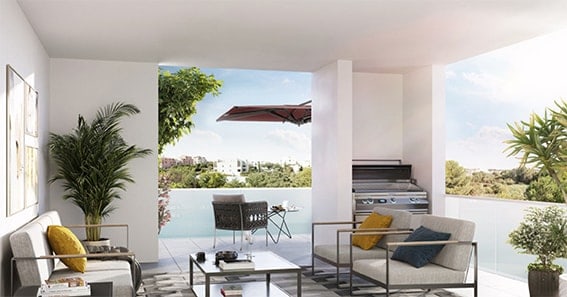 Un T2 de 42 m2 avec un balcon de 14 m2 est à 209 000 €. La livraison est prévue au 4e trimestre 2021.