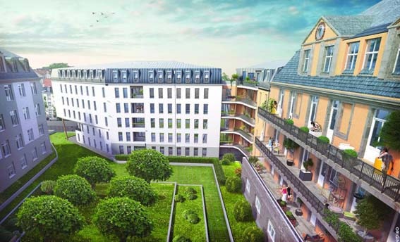 La résidence le Quinze est prévue sur l’ancien site de l’Epide qui fait face au bassin des Remparts. Bartholdi Promotion et le cabinet d’architecte Oslo ont remporté le concours de reconversion de ce site situé à une très belle adresse dans le Quartier des Quinze. Façades en briques, volumes contemporains, espaces verdoyants, jardins suspendus et partagés, espaces extérieurs pour tous les appartements, etc.L’architecture qui associe tradition et modernité s’intègre parfaitement à son environnement.
