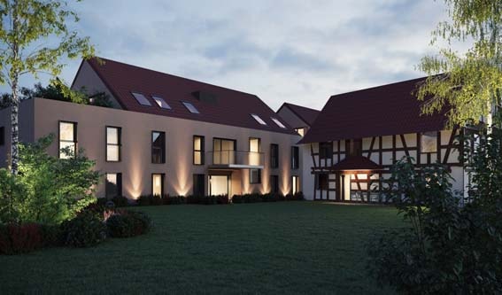 À La Wantzenau, au nord de Strasbourg sur le territoire de l’Eurométropole, la résidence La Villa de l’Ill propose 17 appartements de standing du T2 au T4 dans un bâtiment sur 1 étage. L’ensemble s’intègre et se fond dans une maison traditionnelle à colombage. Les prestations sont haut de gamme : larges espaces extérieurs, carrelage Porcelanosa, salles de bains équipées, plancher chauffant basse température, etc. Des panneaux photovoltaïques assurent l’électricité dans les communs.