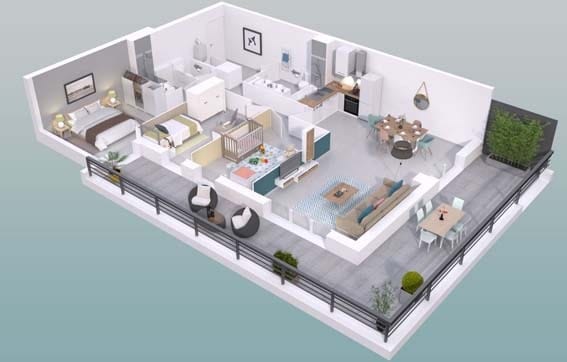 Le programme immobilier se compose de 51 appartements du studio au 4 pièces. Jardin ou balcon, tous disposent d’espaces extérieurs. Les prestations sont de qualité : résidence sécurisée, stationnements privatifs, double vitrage, volets roulants électriques dans le séjour et la cuisine, salles de bain aménagées, confort d’été et d’hiver grâce au respect des normes de la RT 2012, etc.